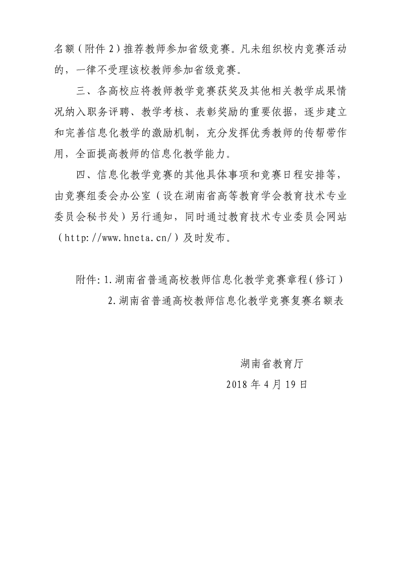 关于组织2018年湖南省普通本科学校信息化教学竞赛的通知