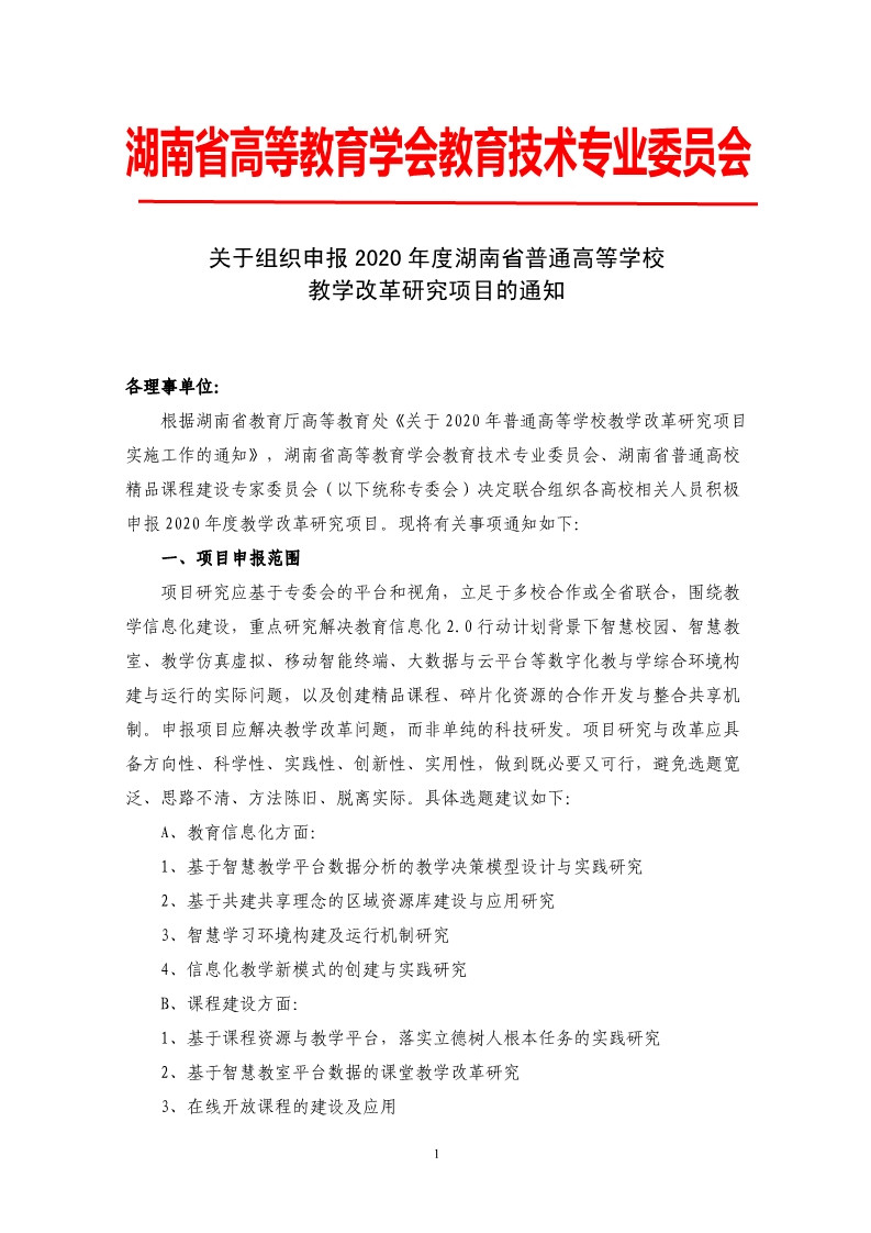 关于组织申报2020年湖南省普通高等学校教学改革研究项目的通知.zip